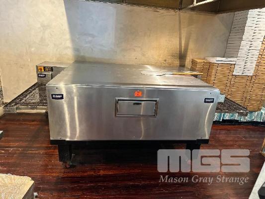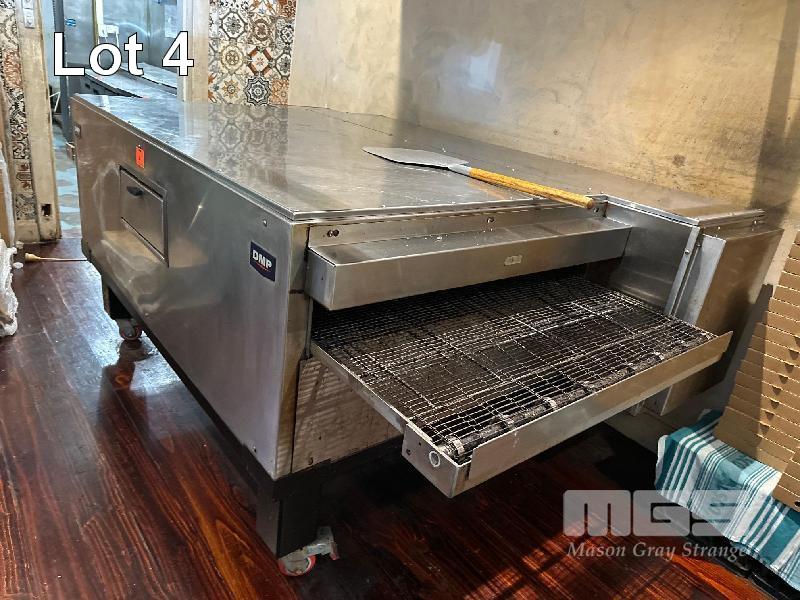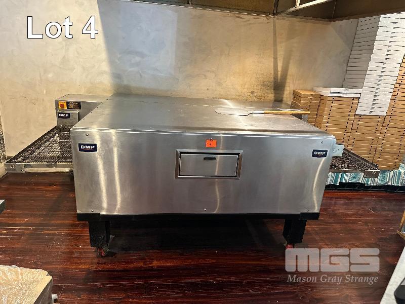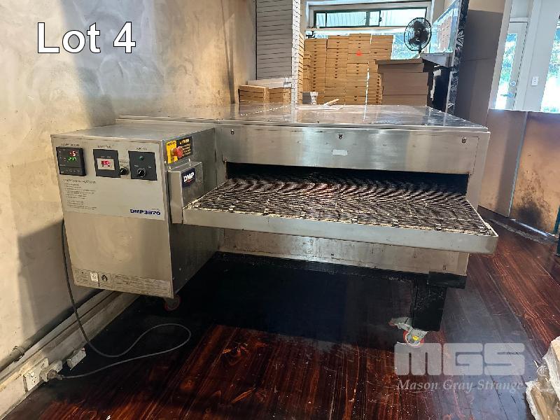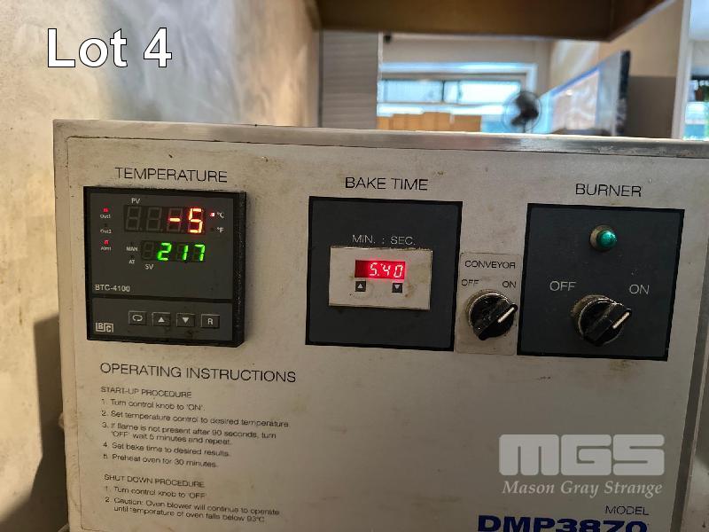 PIZZA CONVEYOR OVEN, DMP MODEL: DMP3870 SERIAL: 00358 SIDE ACCESS HATCH NATURAL GAS, 240V 10AMP PLUG ON STEEL FRAME WITH CASTORS, 970mm CONVEYOR WIDTH AUSTRALIAN MADE (BUYER TO REMOVE)