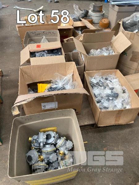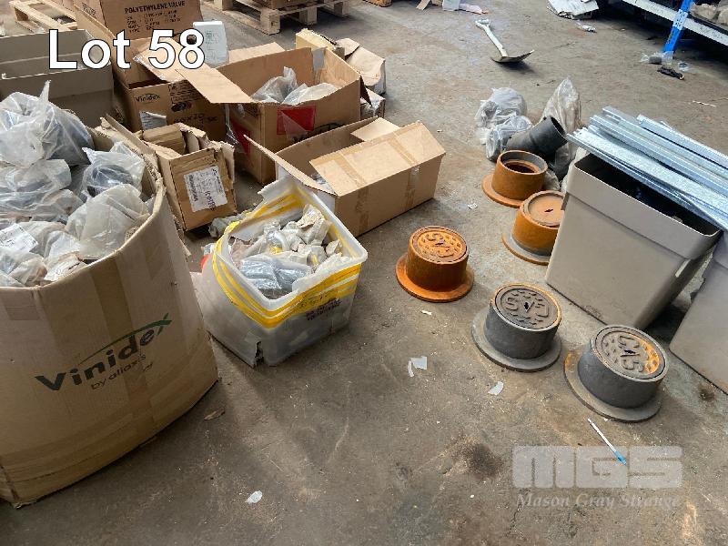 ASSORTED NEW GAS FITTINGS, KIWA, TEES, BENDS, REDUCERS, CAST IRON COVERS