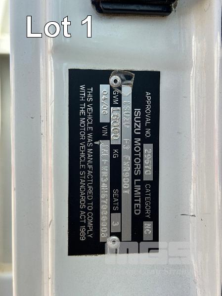 2006 ISUZU F3 FVR900T 950 TIPPER REG: SB 62 LN (SA) (EXPIRY: 04/05/2026) VIN: JALFVR34467000008 ODO: 114,878kms SHOWING GVM: 16,000kg 6 SPEED MANUAL, DIESEL, 3 SEAT, 3400mm STEEL TIPPER BODY, DROP SIDES 2 WAY TAIL GATE, 50mm BALL HITCH, ROLL TARP