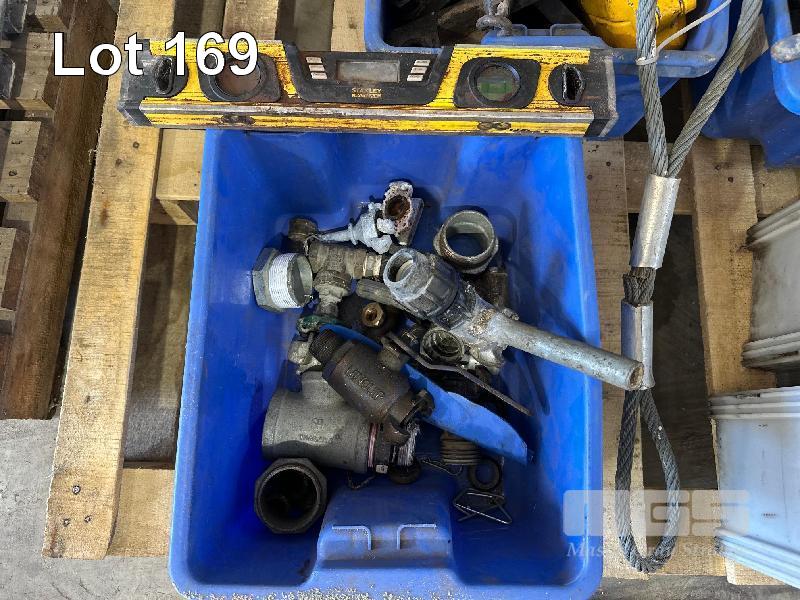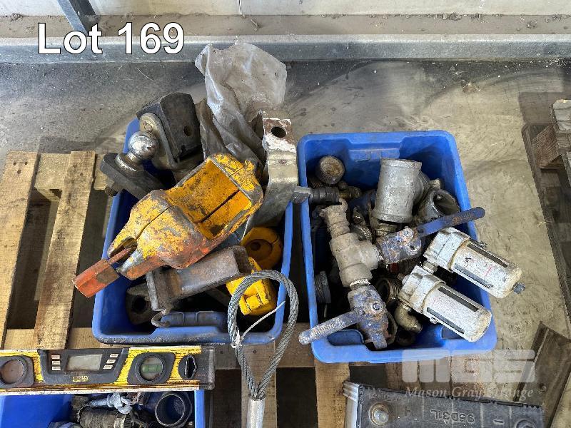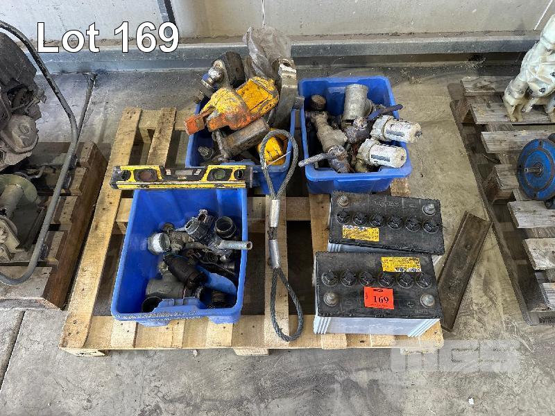 PALLET LOT, TOW BALLS VALVES 2 x BATTERIES, REGULATORS CHAIN LOCKS, ETC