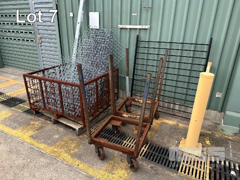 2 x SCRAP FRIDGES, 2 DOOR, STILLAGE OF MESH, 2 x MOBILE STEEL DOLLY'S, PLATE STEEL WORK BENCH & MESH OFFCUTS