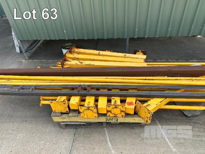9 x SAFETY BOLLARDS, YELLOW STEEL, 1200mm & 18 x HAND RAILS, 2900mm