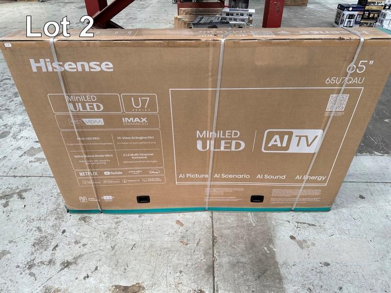 TV, HISENSE 65 INCH, 4K ULED MINI LED, 65U7QAU (RRP $1,699) (BOXED) (SUBJECT TO INSURANCE CLAIM) S/N:HIG2506E1-5500379