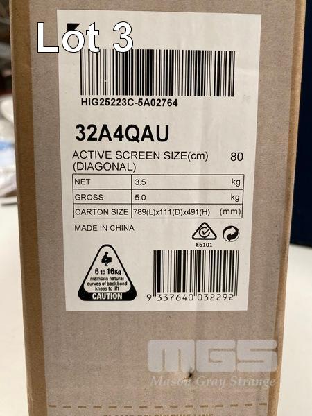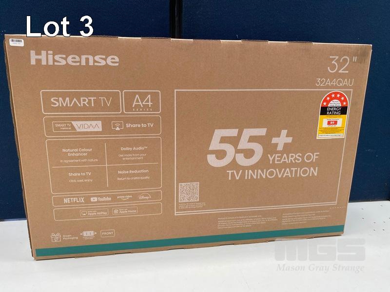 TV, HISENSE 32-INCH A4QAU HD SMART 2025, 32A4QAU (RRP $345) (BOXED) (SUBJECT TO INSURANCE CLAIM) S/N:HIG25223C-5A02764