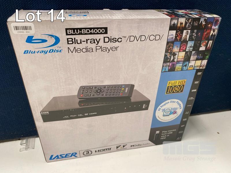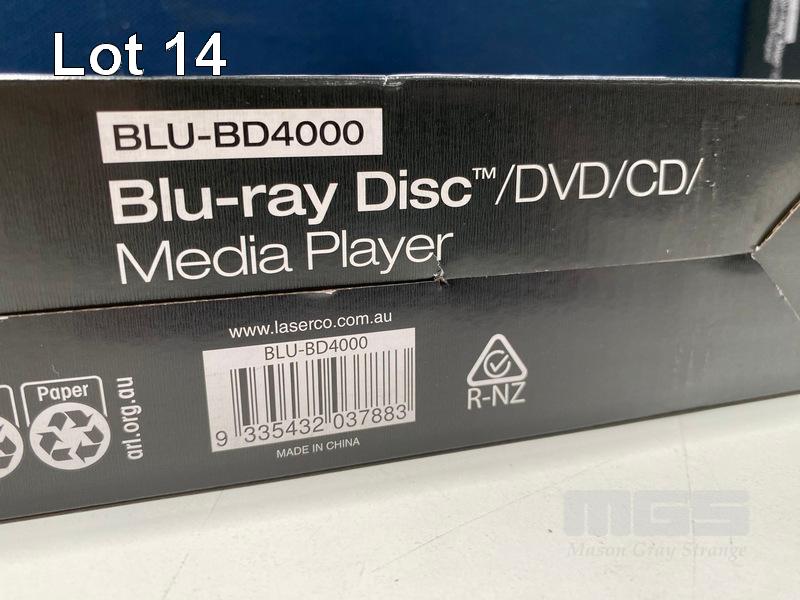 BLU-RAY PLAYER, LASER WITH MULTI REGION, BLU-BD4000 (RRP $149) (BOXED) (SUBJECT TO INSURANCE CLAIM)