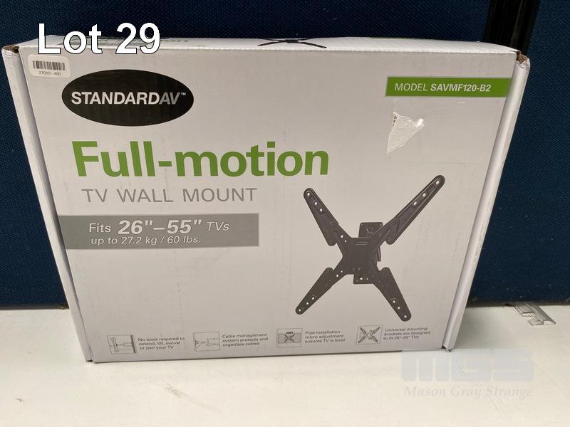 TV WALL MOUNT, STANDARD AV MEDIUM FULL-MOTION FOR UP TO 55-INCH, SAVMF120-B2 (RRP $145) (BOXED) (SUBJECT TO INSURANCE CLAIM)