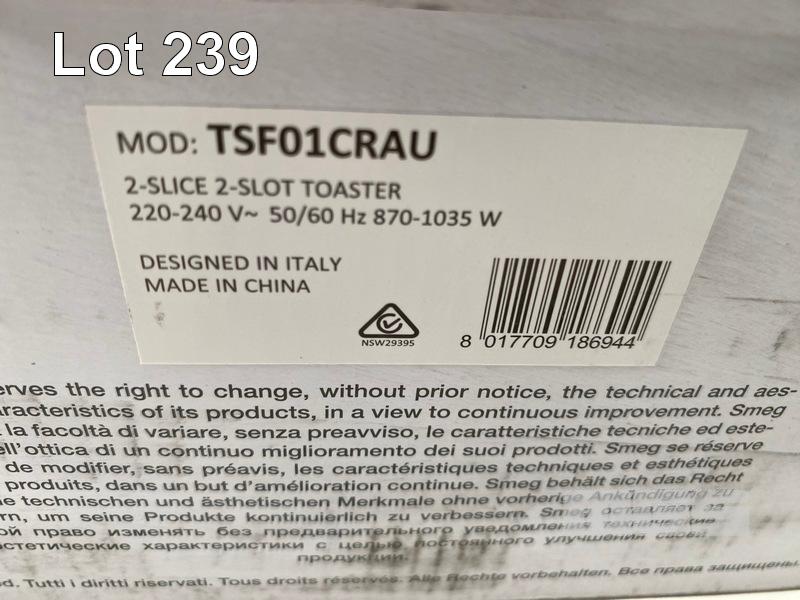 TOASTER, SMEG 50'S RETRO STYLE 2 SLICE - CREAM, TSF01CRAU (RRP $249) (BOXED) (SUBJECT TO INSURANCE CLAIM)