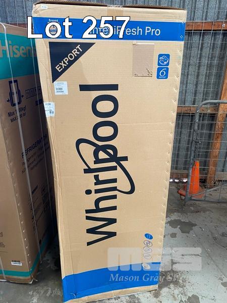 FRIDGE, WHIRLPOOL 313L BOTTOM MOUNT - BLACK STAINLESS STEEL, WB3560EUBL (RRP $1,499) (BOXED) (SUBJECT TO INSURANCE CLAIM) S/N:2154301222608399
