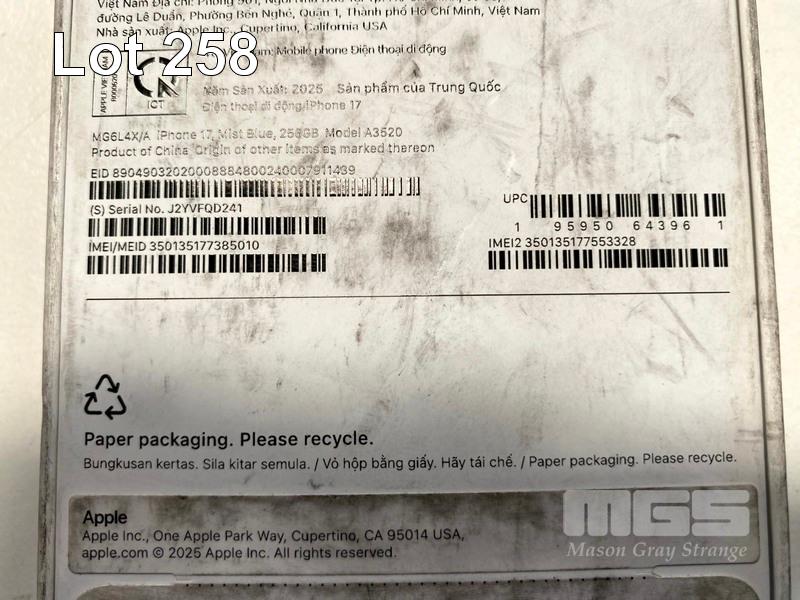 SMARTPHONE, APPLE iPHONE 17 256GB - MIST BLUE, MG6L4X/A (RRP $1,399) (BOXED) (SUBJECT TO INSURANCE CLAIM) S/N:SJ2YVFQD241