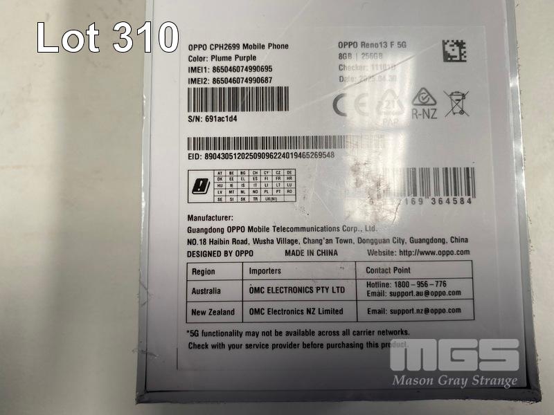 SMARTPHONE, OPPO RENO13 F 5G 256GB - PLUME PURPLE, CPH2699 (RRP $599) (BOXED) (SUBJECT TO INSURANCE CLAIM)