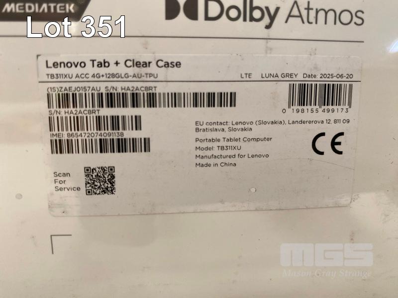 TABLET, LENOVO TAB + CLEAR CASE, 128GB, 4G LTE, 10.1 INCH, TB311XU (RRP $349) (BOXED) (SUBJECT TO INSURANCE CLAIM) S/N:HA2AC8RT