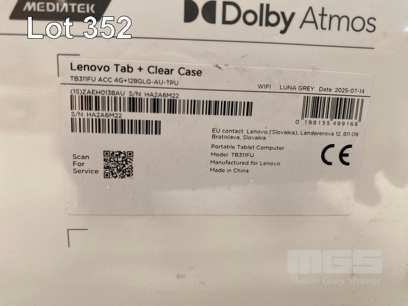 TABLET, LENOVO TAB + CLEAR CASE, 128GB, 10.1 INCH, TB311FU (RRP $329) (BOXED) (SUBJECT TO INSURANCE CLAIM) S/N:HA2A6M22