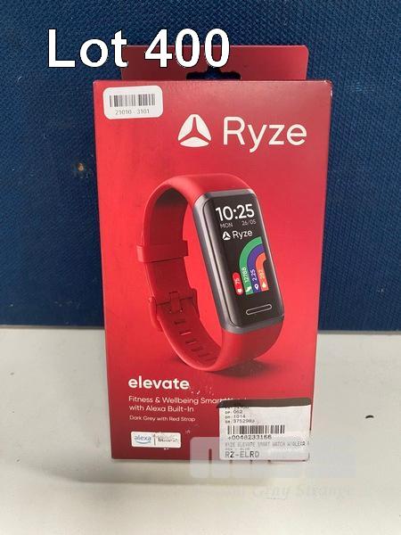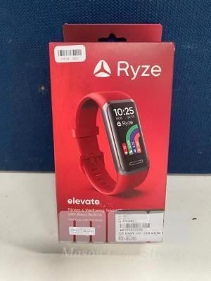 SMART WATCH, RYZE ELEVATE FITNESS & WELLBEING - DARK GREY WITH RED STRAP, RZ-ELRD (RRP $88) (BOXED) (SUBJECT TO INSURANCE CLAIM)