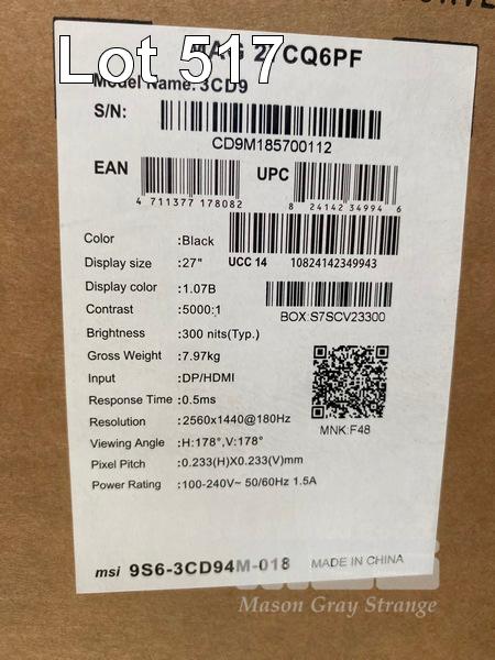 MONITOR, MSI 27 INCH 27C MAG27CQ6PF QHD 180HZ CURVED GAMING