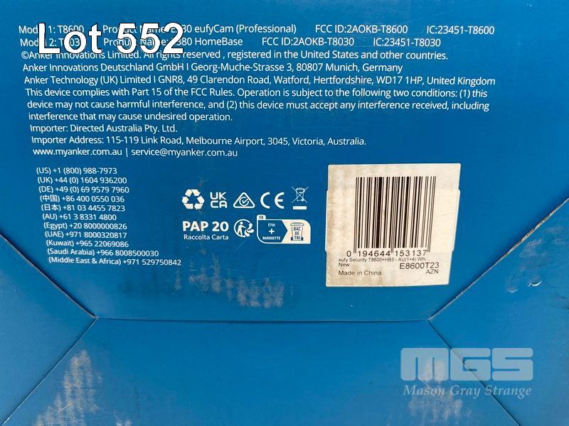 SECURITY CAMERA, EUFY SECURITY EUFYCAM PROFESSIONAL (E330) 4-CAM KIT WITH HOMEBASE 3, E8600T23 (RRP $1,398) (BOXED) (SUBJECT TO INSURANCE CLAIM)