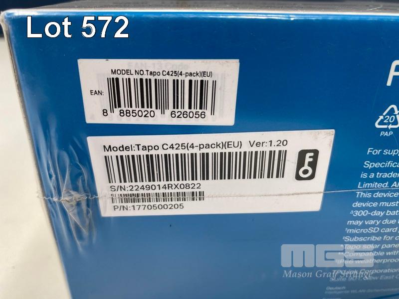 SECURITY CAMERA, TP-LINK TAPO C425 4-PACK SMART WIRE-FREE, TAPO-C425(4PK) (RRP $678) (BOXED) (SUBJECT TO INSURANCE CLAIM)