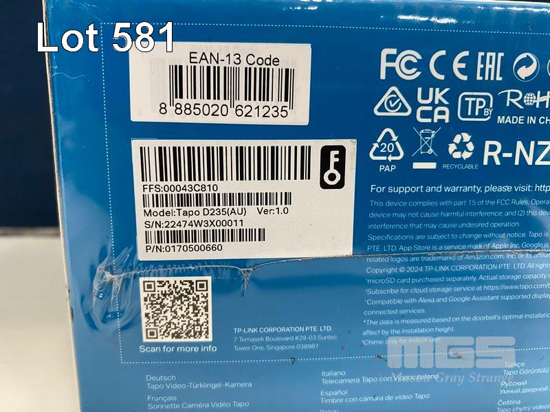 DOORBELL CAMERA, TP-LINK TAPO D235 VIDEO, TAPO-D235 (RRP $248) (BOXED) (SUBJECT TO INSURANCE CLAIM)