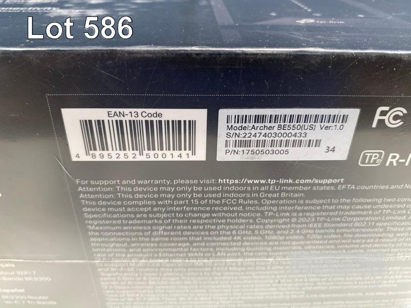 ROUTER, TP-LINK BE9300 TRI-BAND WI-FI 7, ARCHER BE550 (RRP $498) (BOXED) (SUBJECT TO INSURANCE CLAIM)
