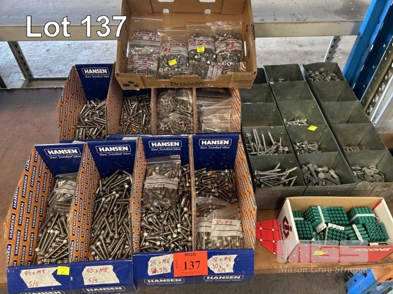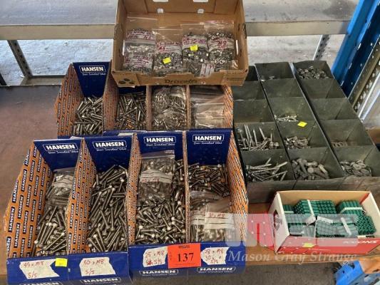 LARGE ASSORTMENT STAINLESS STEEL/GAVLANISED, BOLTS, NUTS, TEK SCREWS, WASHERS, ETC