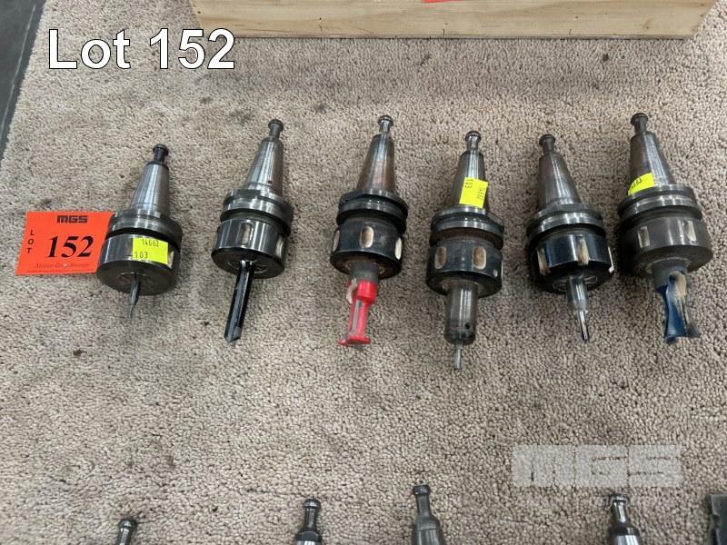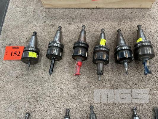 6 x TOOL HOLDERS, BT-30 WITH ASSORTED WOOD MOULDER CUTTING BITS