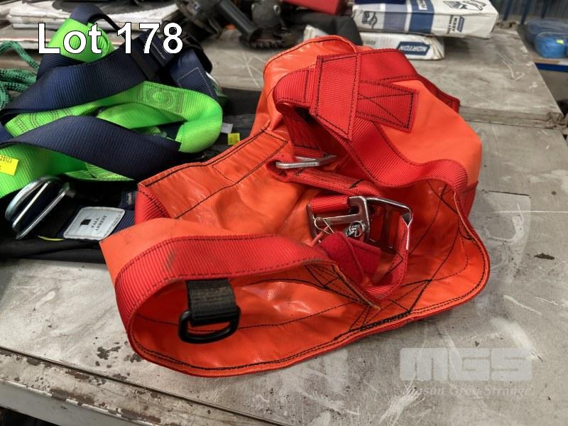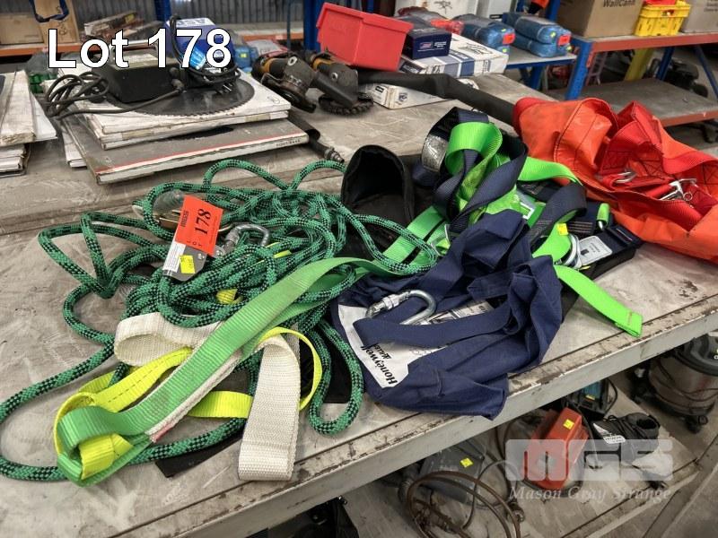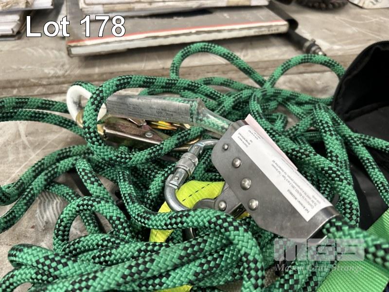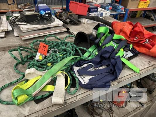 FALL ARREST BODY HARNESS, CLIMBING ROPE & MILLER FALL ARREST DEVICE, WITH HONOR PERSONNEL LIFT SEAT