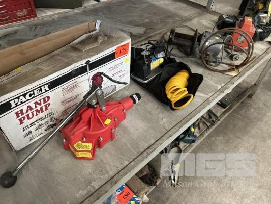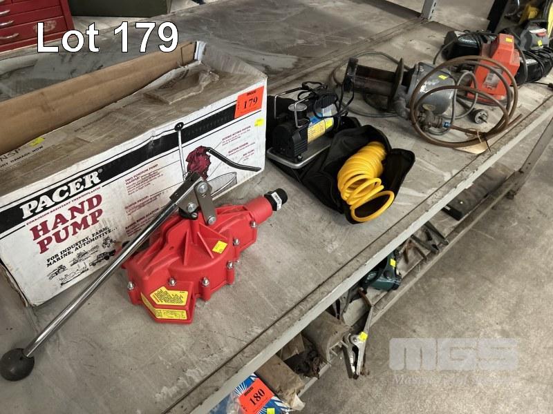 HAND PUMP, PACER, MINI AIR COMPRESSOR, DR AIR, 12V, FLUID PUMP, 240V, CHARGERS & POWER BOX 1 x SHELF
