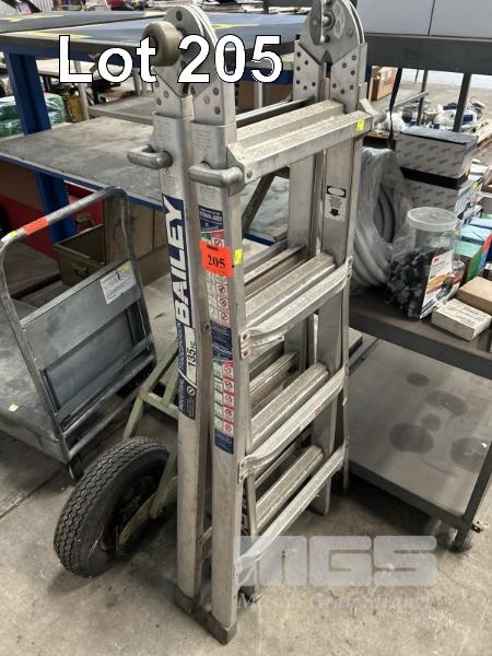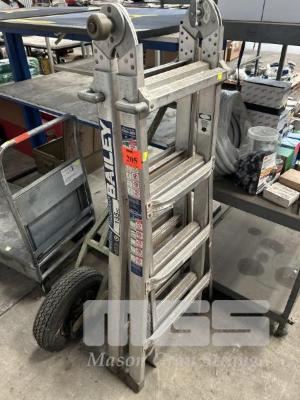 BAILEY TRESTLE LADDER, 135kg, 1.5 TO 4.5m WITH JOCKEY WHEEL/STEER WHEEL ASSEMBLY