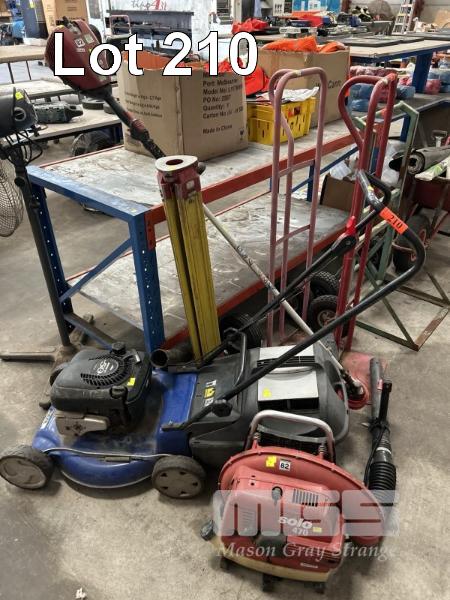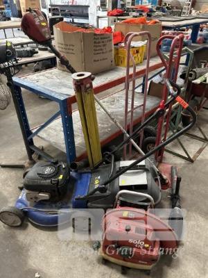 LAWNMOWER, VICTA TORNADO, B&S QUANTUM XTS50 BLOWER BACKPACK, SOLO 470,. PETROL, EDGE TRIMMER SOLO 129 PETROL & LEICA TRIPOD