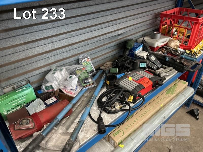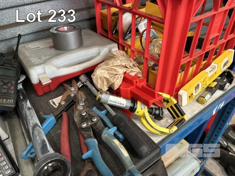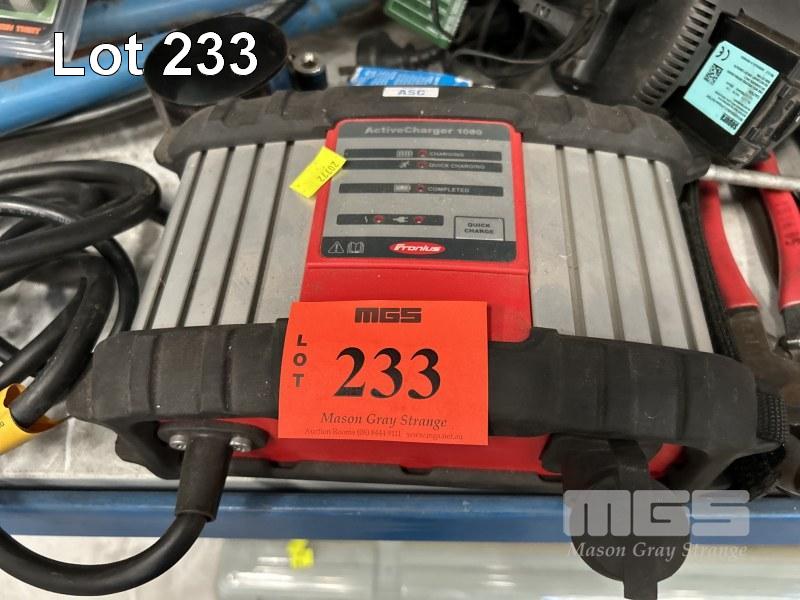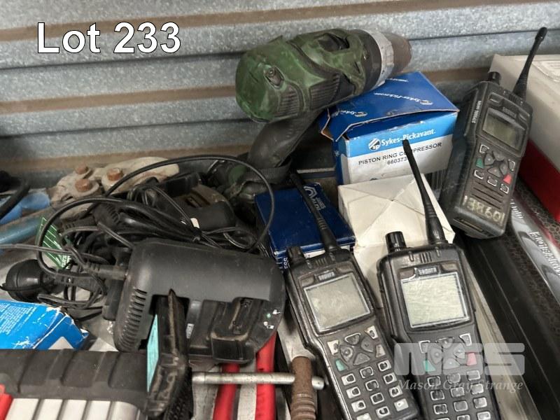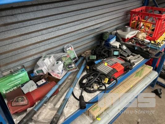 ACTIVE BATTERY CHARGER, FRONIUS, 1000, CABLE CUTTERS, 900mm, SIDCHROME COMBINATION SPANNER SET, DRILL CHUCKS, 2 WAY RADIOS, HAND TOOLS, ETC 1 x SHELF