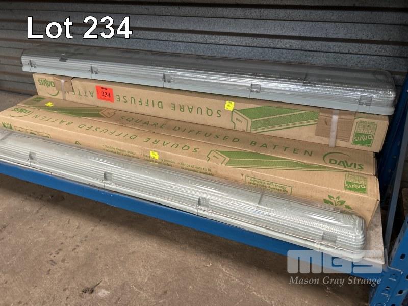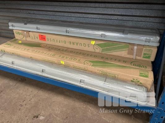 8 x FLURO LIGHT FITTINGS, DAVIS 1200mm, 2 x 28w AS NEW