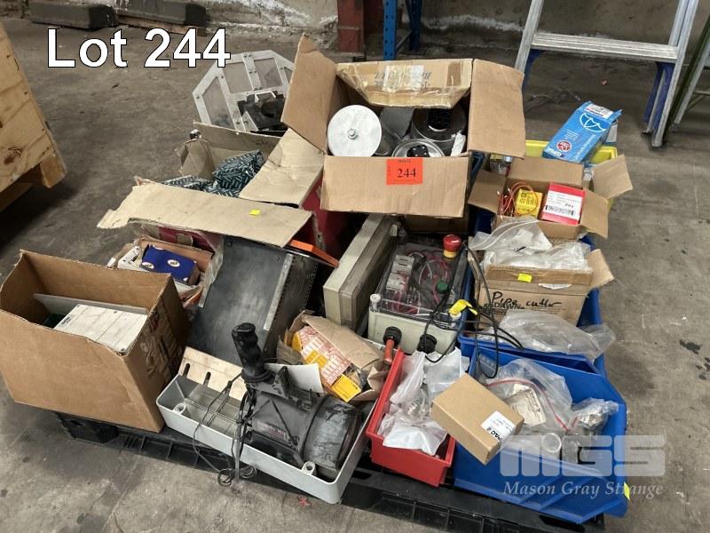 ELECTRICAL PARTS & COMPONENTS, INCLUDING LARGE CAPACITORS, SWITCHES, SOCKETS, SWITCHES, GAUGES, ETC 1 x PALLET