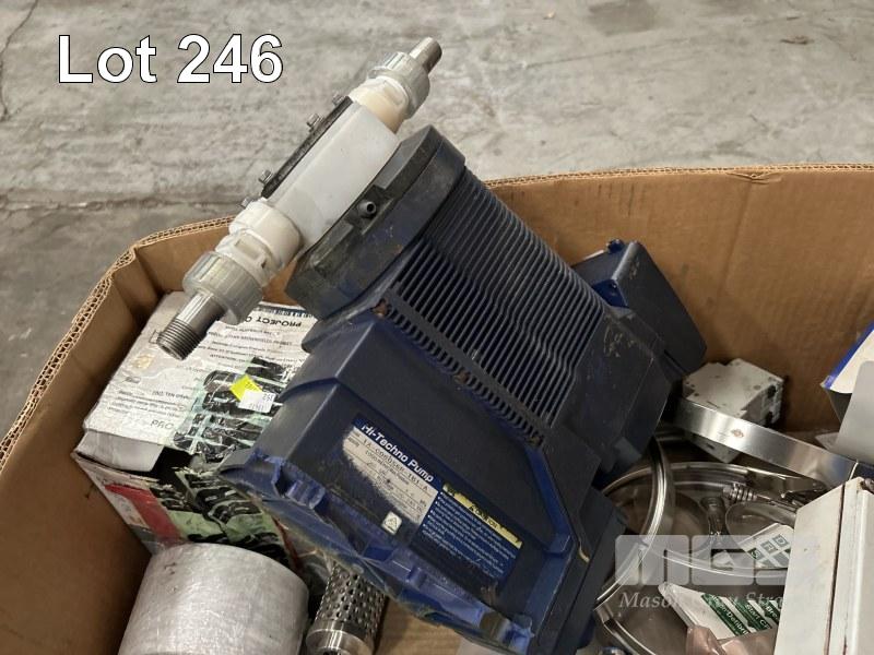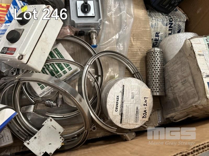 ASSORTED INDUSTRIAL PARTS & COMPONENTS INCLUDING CHEMICAL DOSE PUMP, PUMP SEAL, (A/F), SWITCHES, STAINLESS STEEL CALMPS, FILTERS, GASKETS, ETC CONTENTS 1 x PALLET