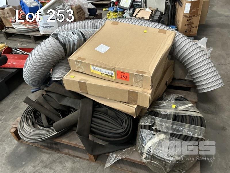 5 x HYDRAULIC HOSES & FITTINGS, ENERPAC 20', 3/8 NPT x CH604, AIR HOSE ROLL, PROTECTIVE HOSE SHEATHS, ETC 1 x PALLET