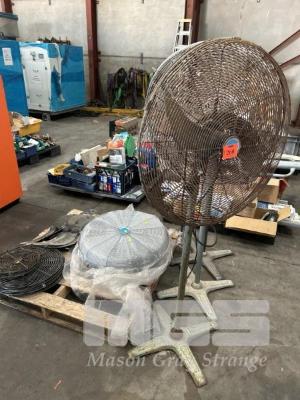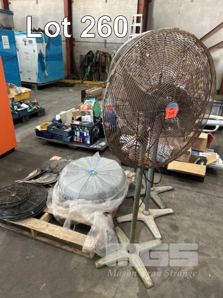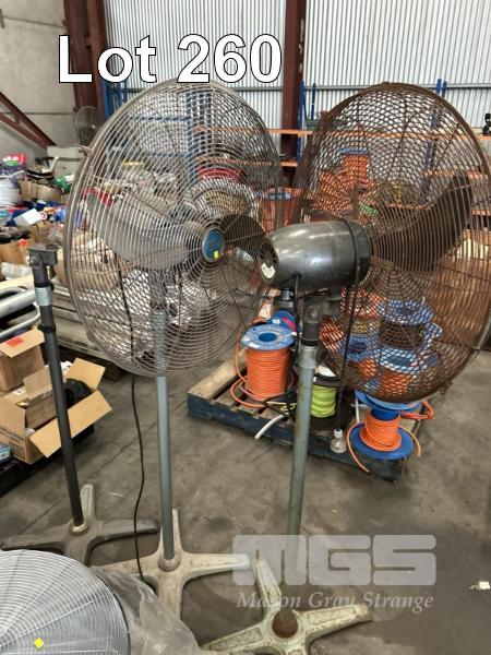2 x WORKSHOP FANS, EBONY, 240V, SPARE COVERS & BLADES, ETC