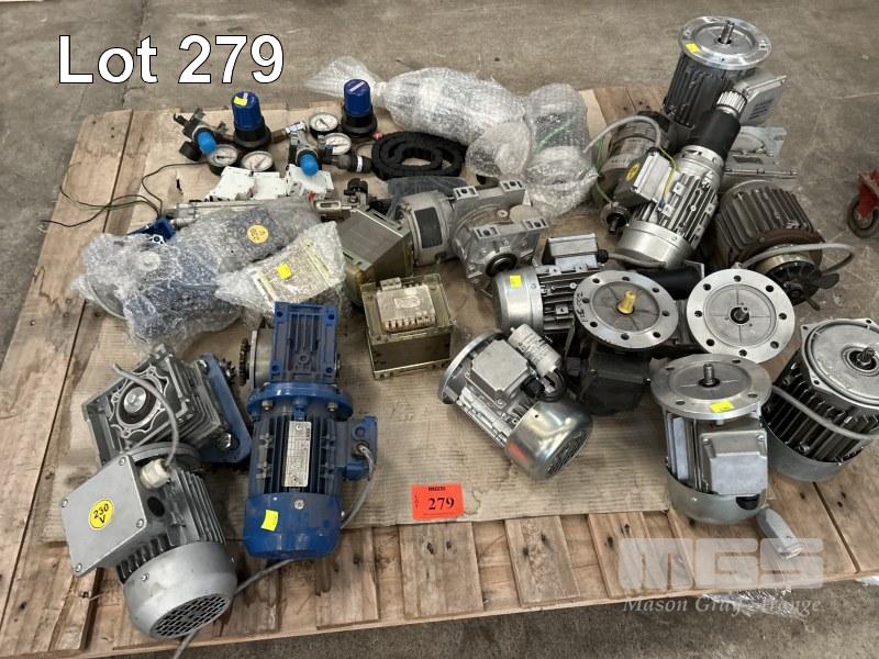 13 x ELEC MOTORS INCLUDING, CARPANELLI, .25kw, 4 x REDUCTION DRIVE UNITS WITH MOTORS, TRANSFORMERS, PNEUMATIC RAMS & REGULATORS, BOC 8000, ETC 1 x PALLET