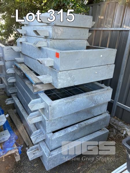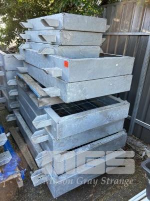 9 x HEAVY DUTY GALV STEEL FRAMES, INCLUDING 4 @ 1900 x 1000 x 200mm THICK, 2 @ 1600 x 900 x 200mm THICK & 3 @ 1100 x 600 x 150mm THICK EACH FITTED WITH 4 x BOLT TABS & STEEL MESH INSERTS 1 x PALLET
