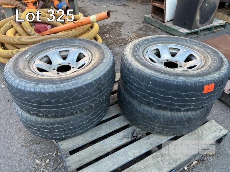 4 x RIMS & TYRES, SUIT NISSAN PATROL, LT265/75R16 6 STUD 1 x PALLET