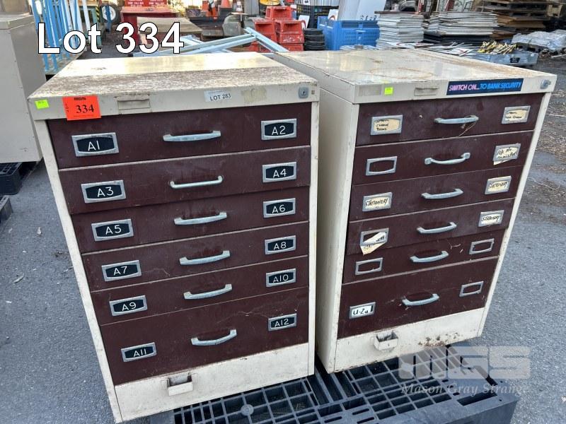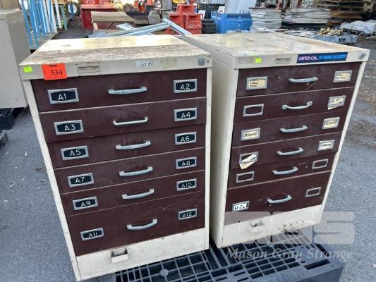 2 x 6 DRAWER STORAGE CABINETS, 660 x 710 x 1000mm (H), BROWN STEEL 1 x PALLET