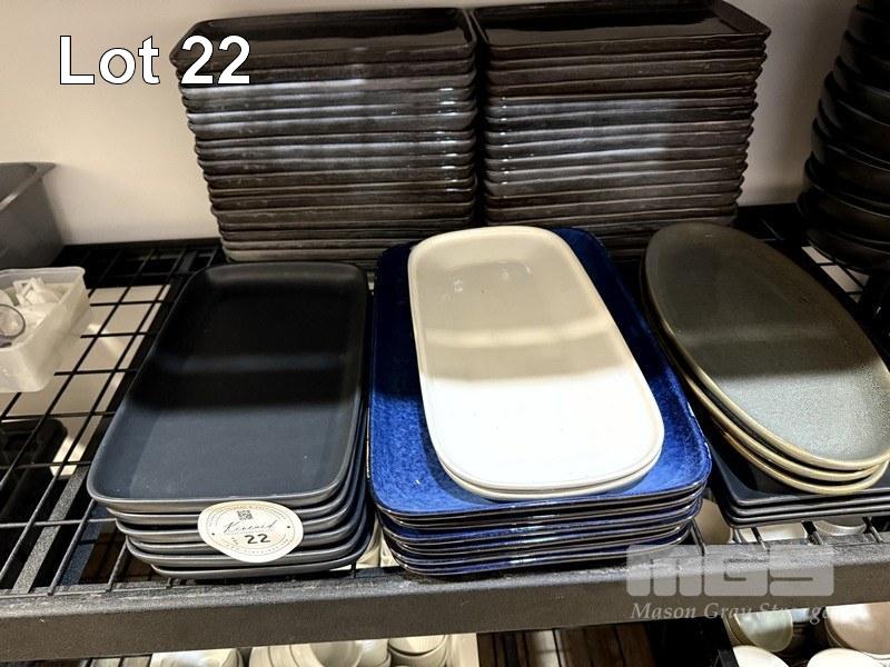 38 x GREY RECTANGULAR PLATES, 6 x MATT BLACK RECTANGULAR PLATES, 2 x WHITE RECTANGULAR PLATES, 6 x BLUE RECTANGULAR PLATES, 3 x OLIVE OVAL PLATES, 4 x BLACK RECTANGULAR PLATES