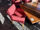 2 x COMO OTWAY GARNET COLOURED FABRIC DINING ARM CHAIRS