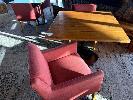 2 x COMO OTWAY GARNET COLOURED FABRIC DINING ARM CHAIRS
