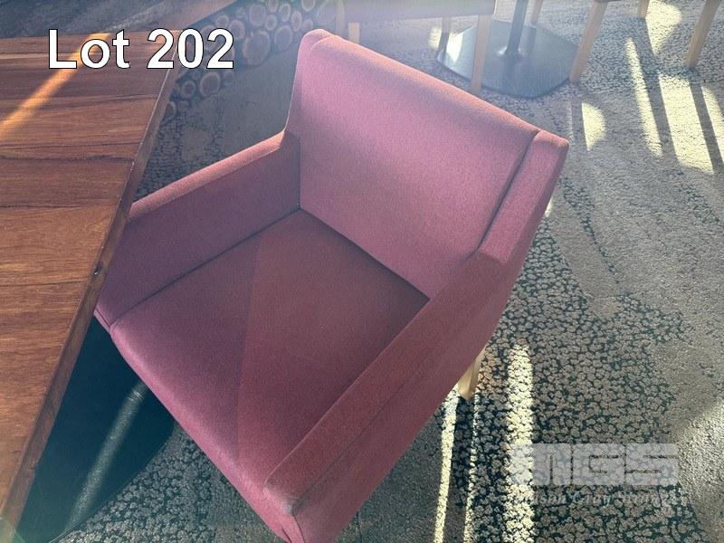 2 x COMO OTWAY GARNET COLOURED FABRIC DINING ARM CHAIRS