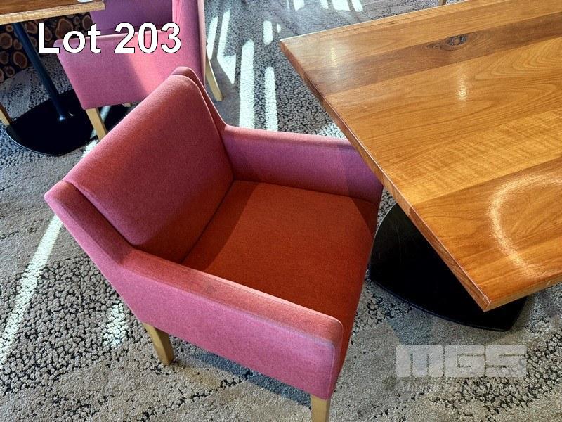 2 x COMO OTWAY GARNET COLOURED FABRIC DINING ARM CHAIRS