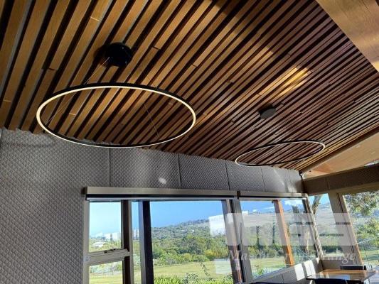 2 x DESIGNER SUSPENDED CIRCULAR CEILING LIGHT FITTINGS