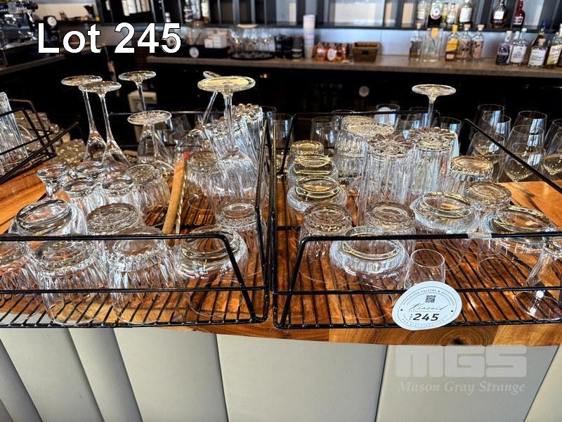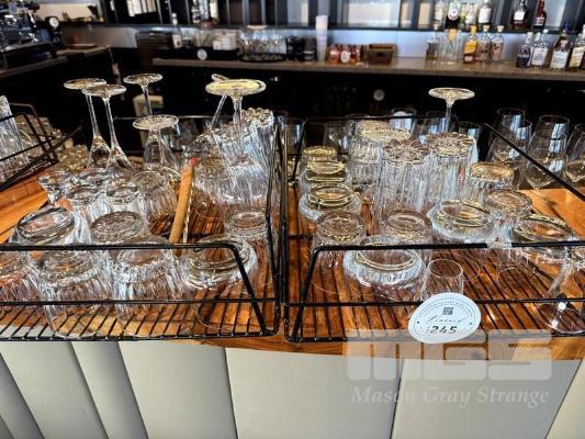 2 x GLASS TRAY & CONTENTS OF ASSORTED GLASSWARE, TUMBLERS, ETC