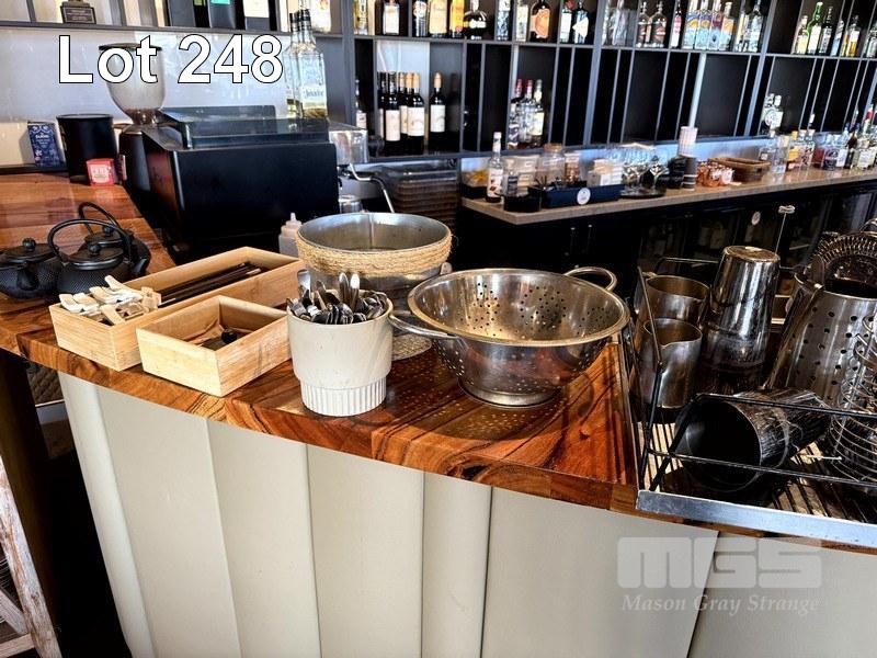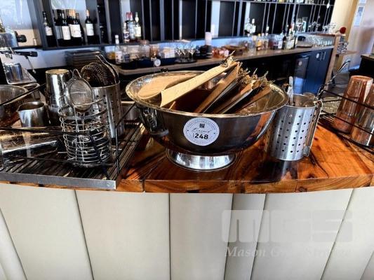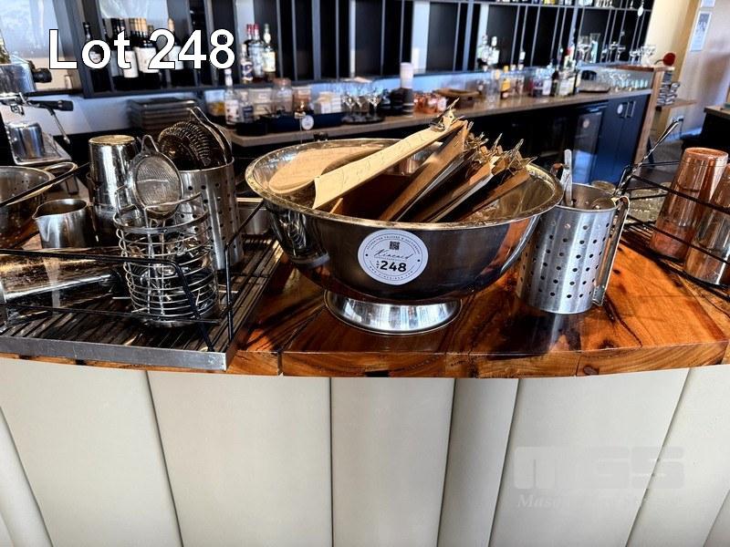 ASSORTED STAINLESS STEEL BARWARE, CUTLERY & TEAPOTS