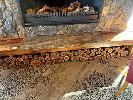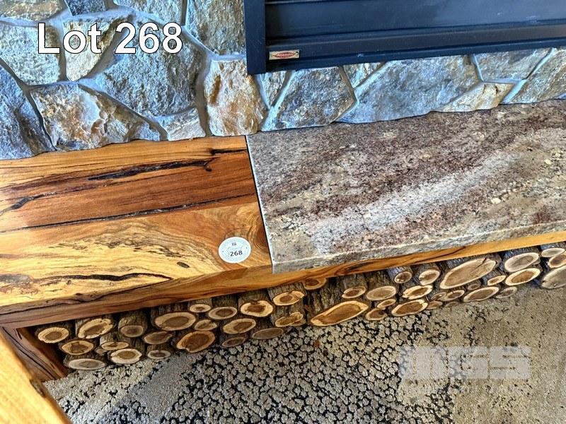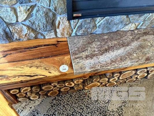 SOLID TIMBER HEARTH BENCH SEAT WITH STONE TOP INLAY APPROX 3200mm & ORNAMENTAL LOGS