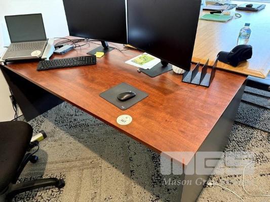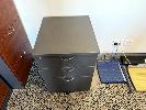 ROSEWOOD & GREY LAMINATE OFFICE DESK WITH GREY LAMINATE 3 DRAWER PEDESTAL & BLACK FABRIC OFFICE CHAIR