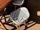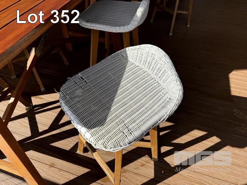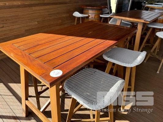 SOLID TIMBER HIGH TABLE 1500 x 800mm WITH 4 x WHITE RATTAN TIMBER FRAMED BAR STOOLS