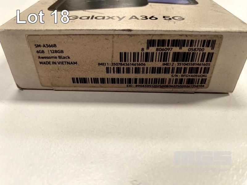 SMARTPHONE, SAMSUNG GALAXY A36 5G 128GB - BLACK, SM-A366B (RRP $549) (BOXED) (SUBJECT TO INSURANCE CLAIM) S/N:RFGYA05VQKL
